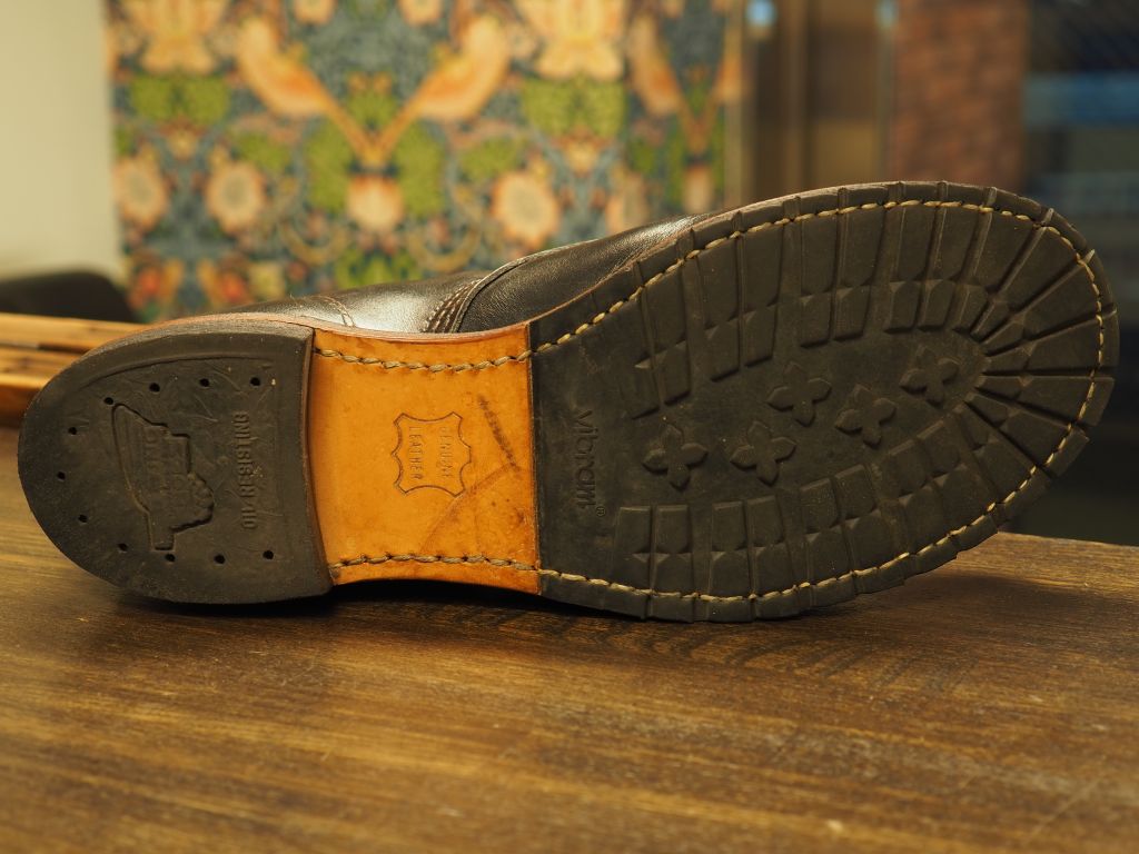 写真にあるように特段ソールも傷んでいませんしオールソールが絶対必要という状態ではありませんが、仕様を変えたいとの事でお持ち込みいただきました。
