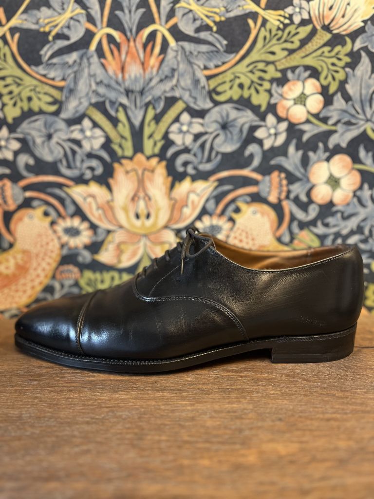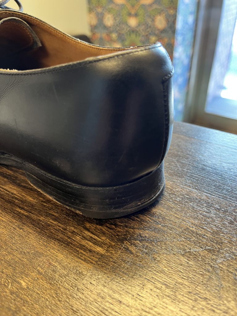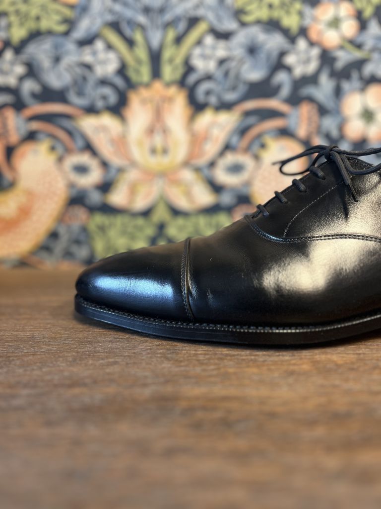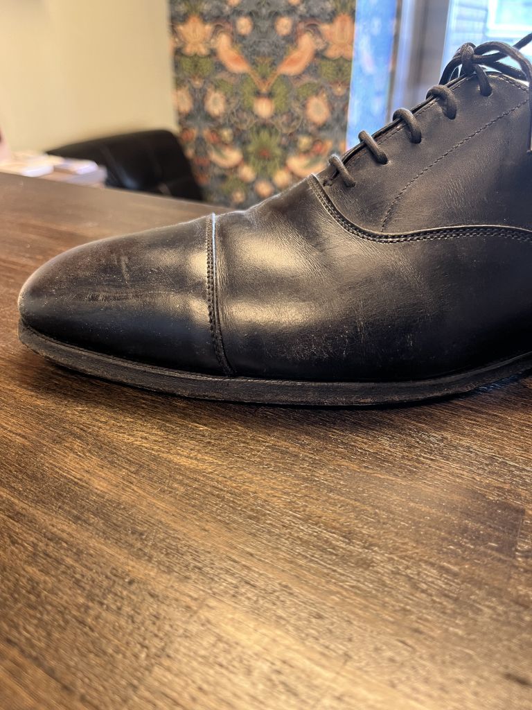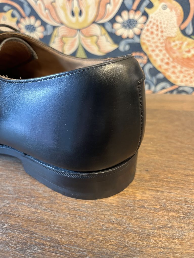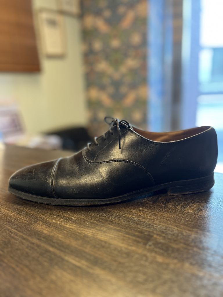 ストレートチップならではのフォーマルな仕上げに。ウェルト周りのギザも入れ直してあります。