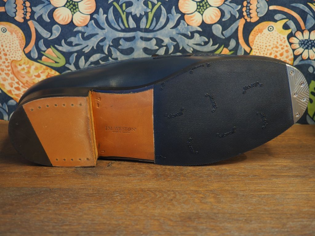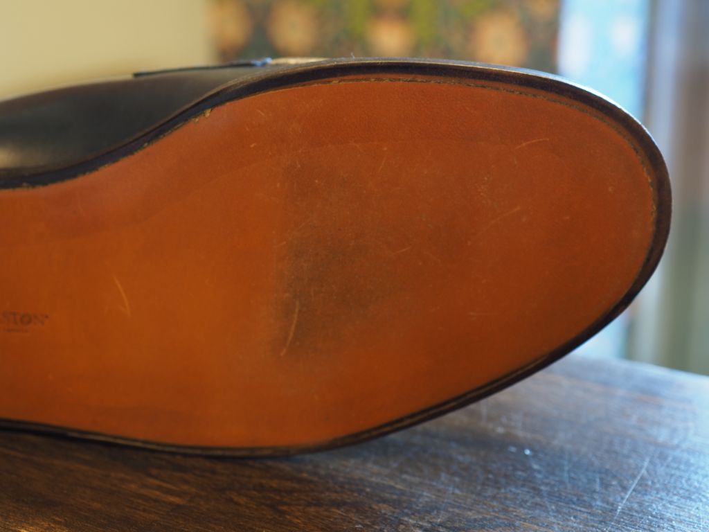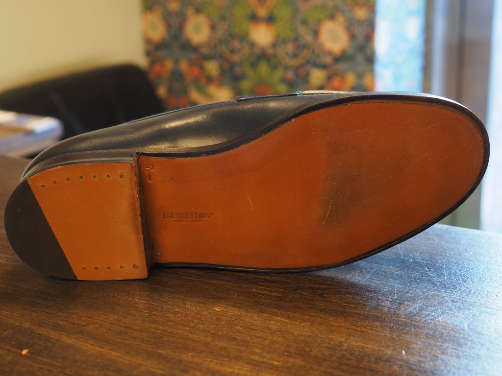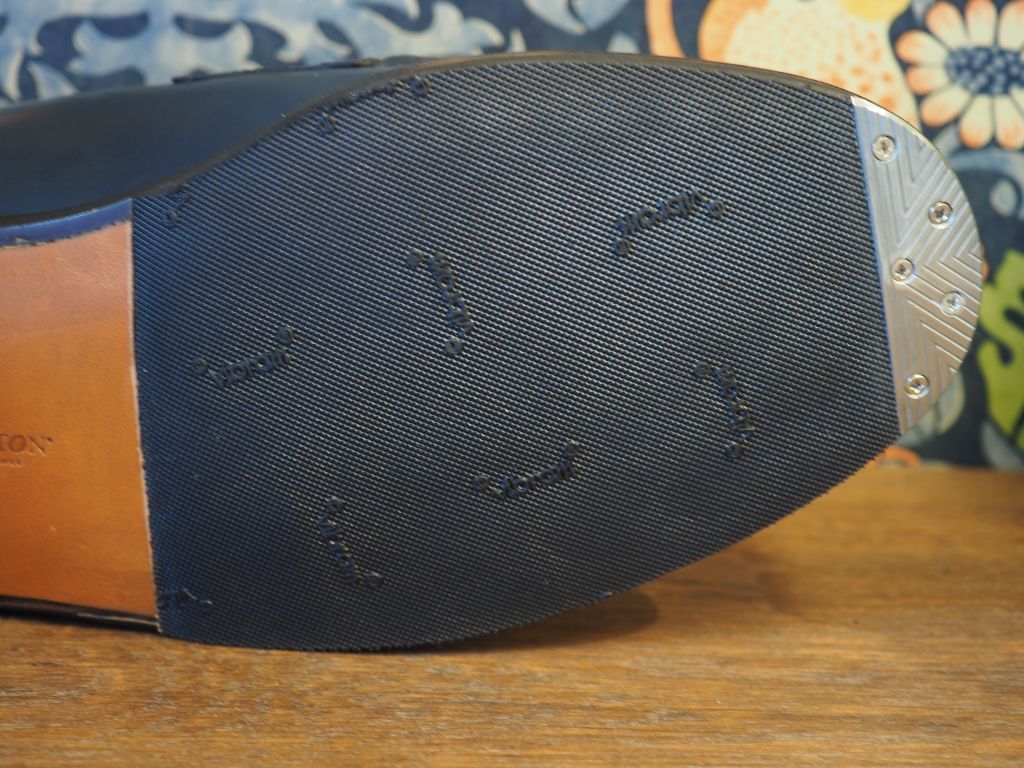 今回は新品の状態でお持ち込みいただき、ヴィンテージスチールでつま先補強、合わせて底面はハーフラバーを取り付けました。
